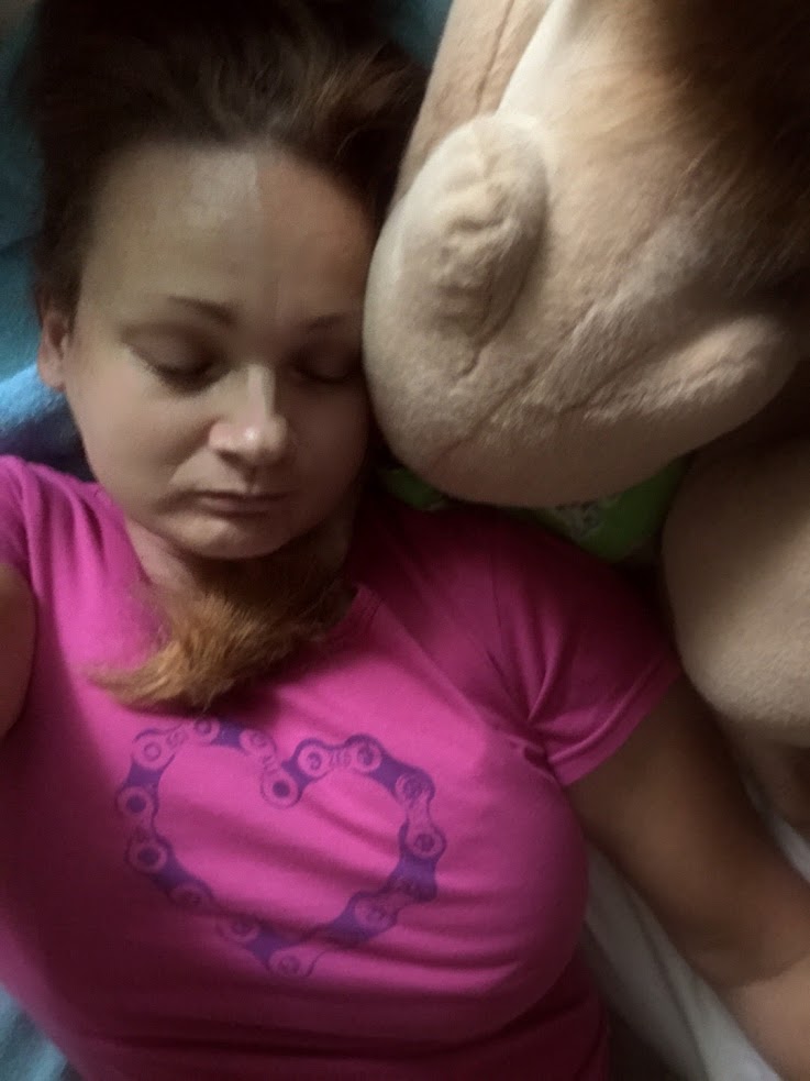 22 november 2017. Na vele uren gefietst te hebben ben ik vaak toch redelijk moe, en heb ik daarom geen uitvoerige (lange) knuffelenergie meer over voor de Rob/Bor leeuwen. Maar ik had wel Most Male Rob leeuw gedurende de hele nacht in mijn armen, met weer de perfecte klik, deze verbazingwekkende en zeer constante magische mix van liefde, support en erotiek. ’s Ochtends ontdekte ik opeens dat de staart van de leeuw perfect rechtop stond, als het bekende, mannelijke ochtendfenomeen. De uitdrukking op het gezicht van Most Male Rob leeuw was die van “Hé, hier kan ik niets aan doen hoor!”. De leeuwenstaart leunde tegen een andere leeuw en ik had hem niet zo neergezet, althans: niet bewust. Het werkte danig op mijn lachspieren.