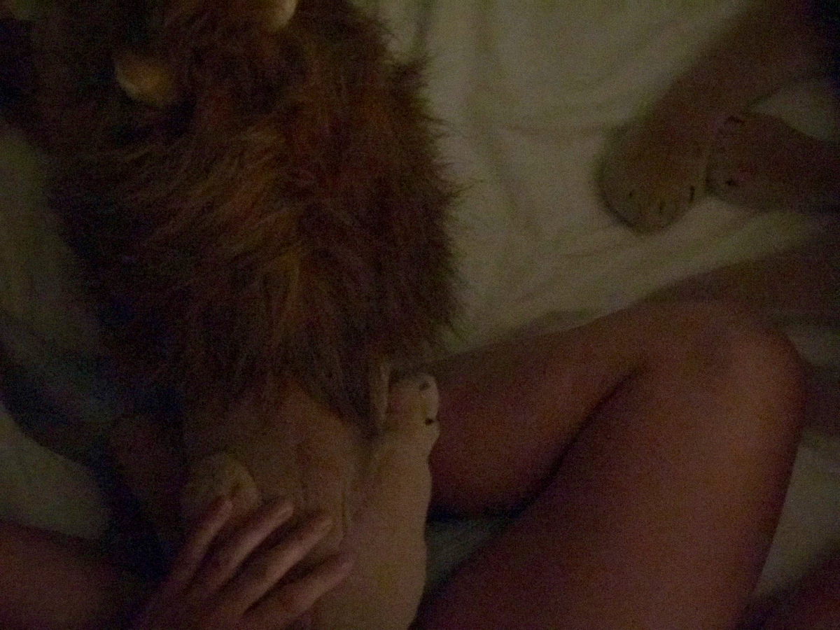 Ik werd wakker, met de allerliefste Rob Young leeuw, me precies zo vasthoudend, allerwarmst, allerliefst, zoals het gevoel van vastgehouden worden in de droom door Pepijn en hem ook vast te houden. Het was alsof Rob mee letterlijk een duwtje in Pepijns richting wilde geven, en daarmee afstand wilde doen van zijn eigen rechten. Wilde hij dat ik “het leven” zou kiezen, was dit symbolisch misschien?