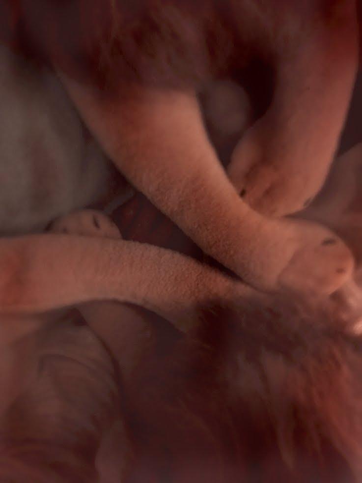 Misschien dat het raadsel van het verborgen ruggengraat-einde in het uiteinde van de leeuwenstaart ooit opgelost wordt. Voor mij zijn hun plush evenknieën (“pluimen” is dus eigenlijk het woord hier) zeer sterk erotisch geladen. In de avond en nacht, zodra ik een of meer van de Rob plush meerling begin vast te houden en ook zo’n leeuwenstaart-pluim in mijn hand neem, reageert mijn lichaam intens, bijna altijd met orgastische uitbarstingen. In het algemeen reageert mijn lichaam op een bijzonder fysieke manier op Robs energie die door deze plush leeuwen stroomt.
