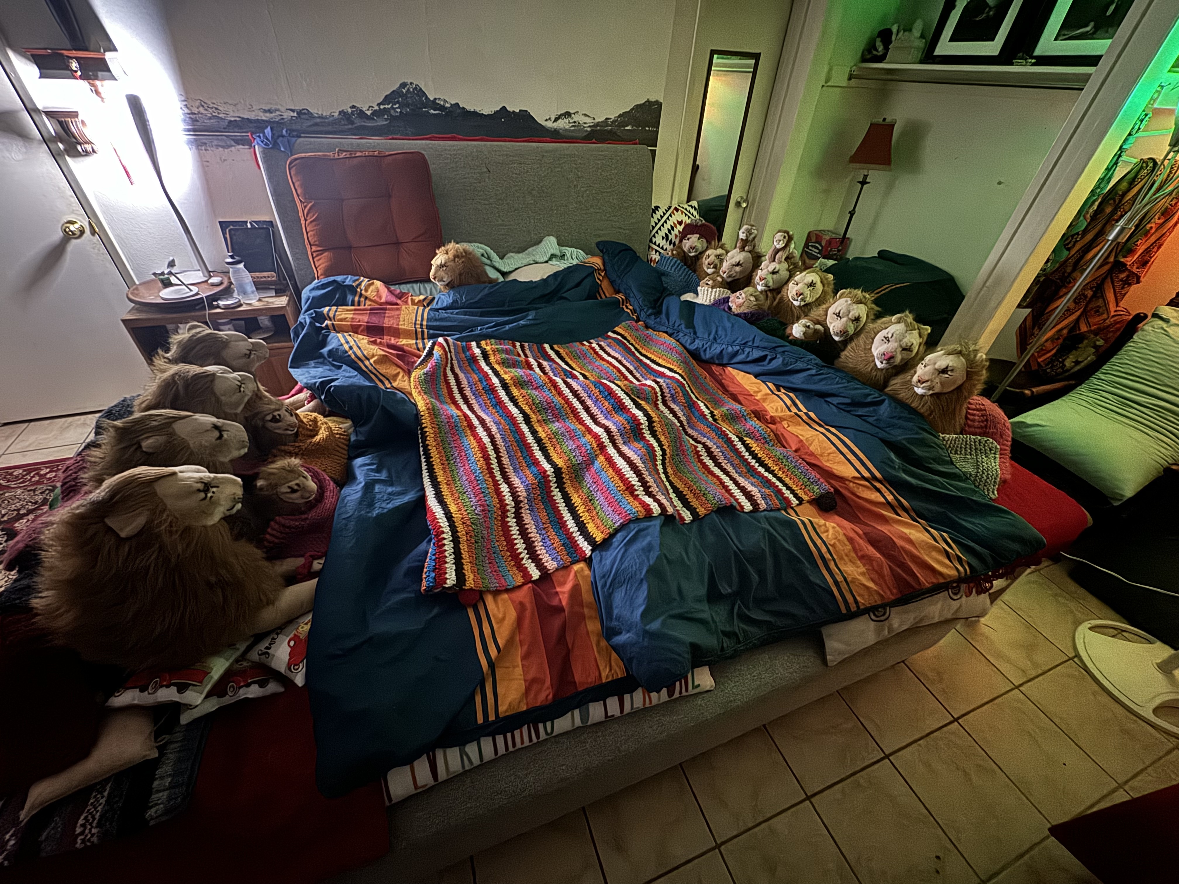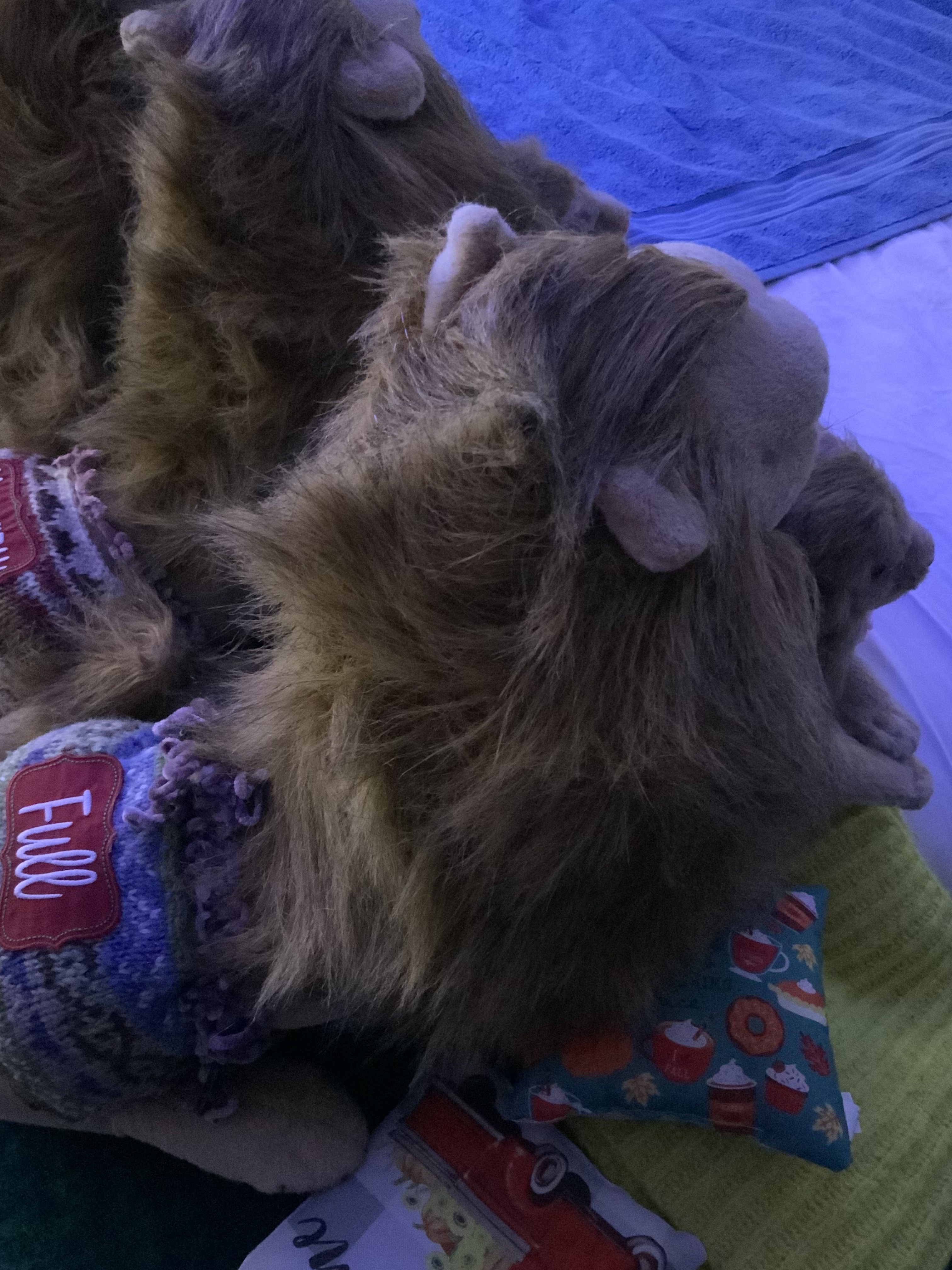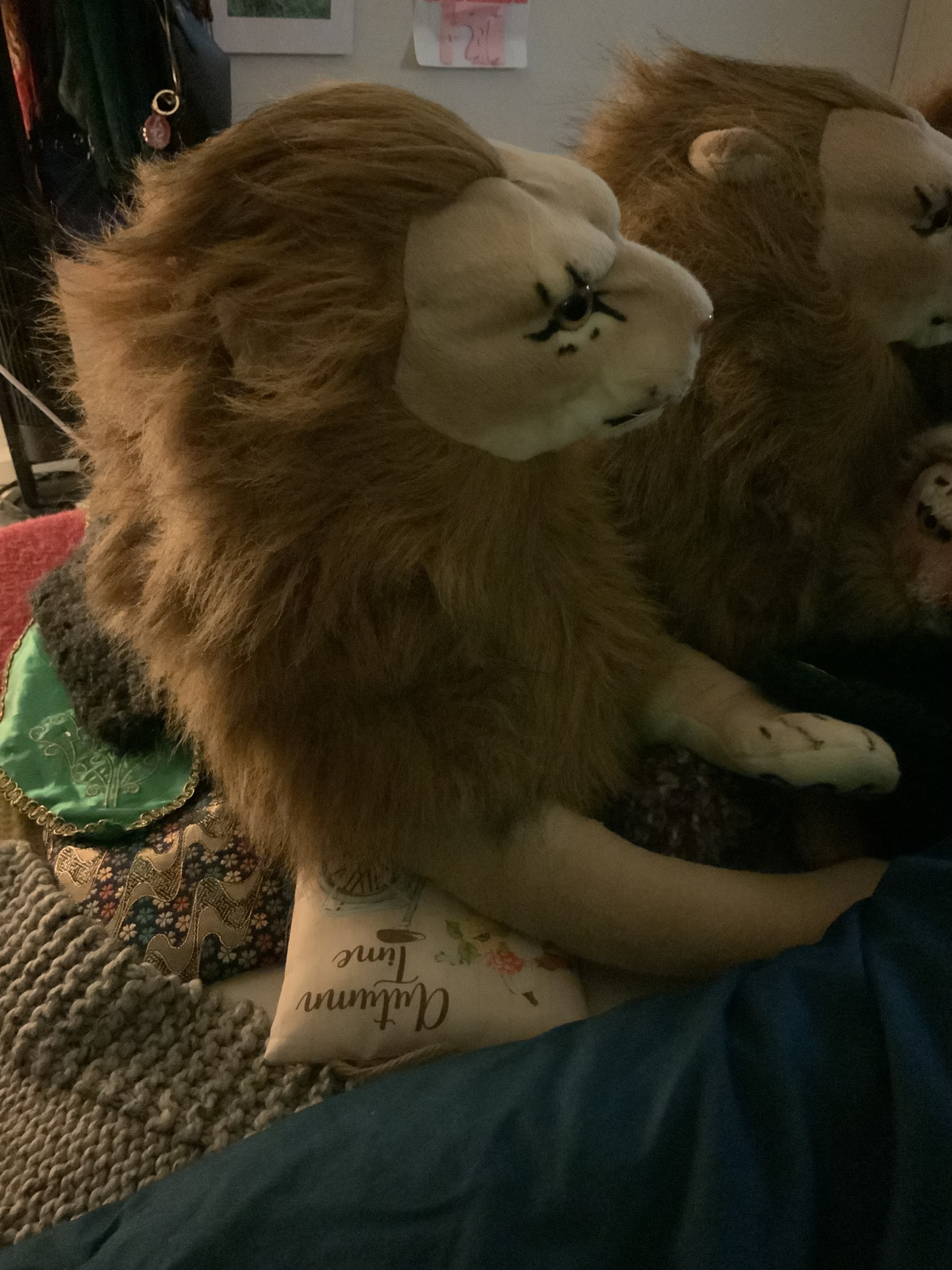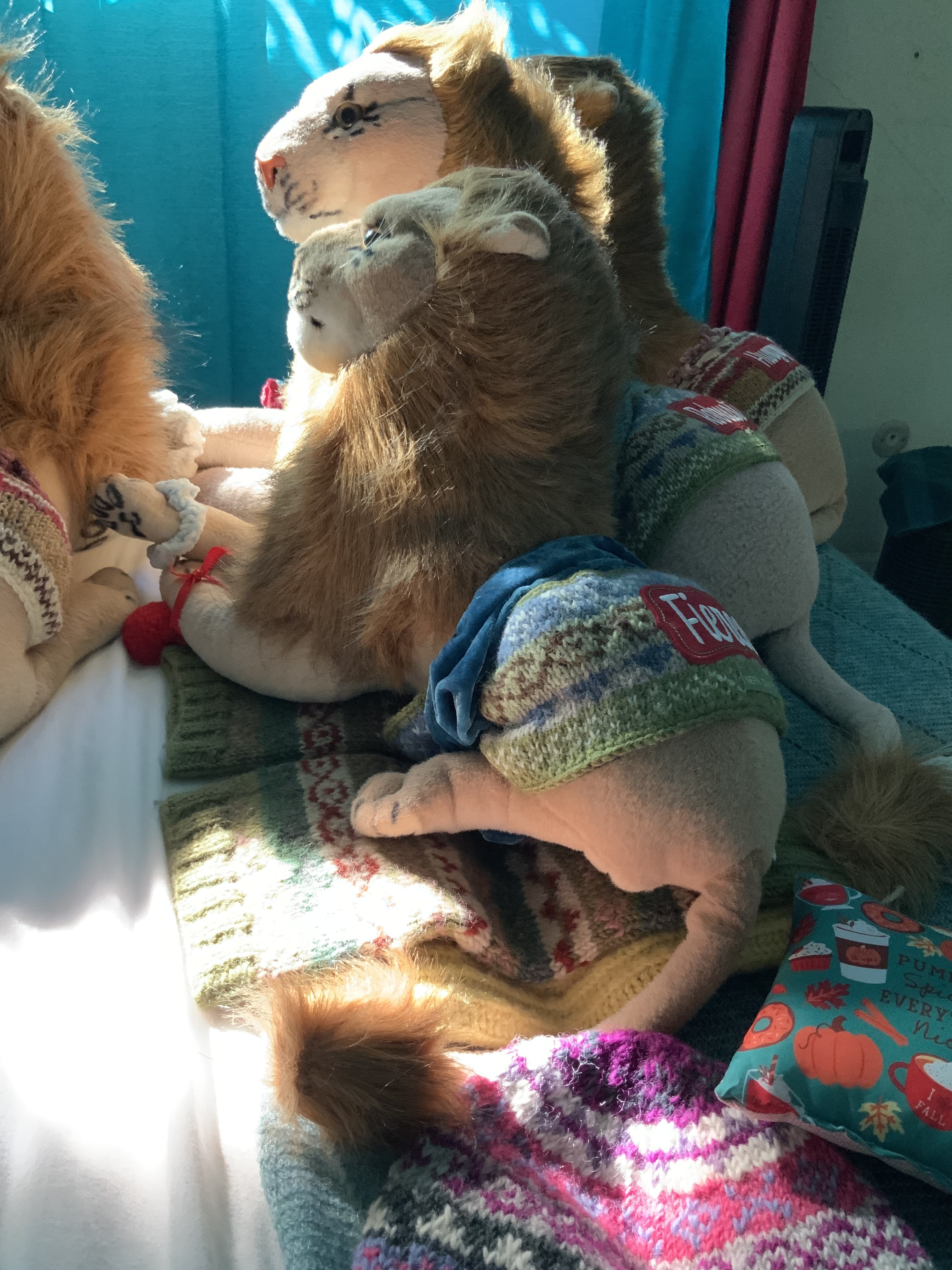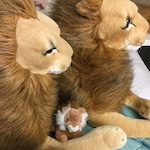 Voor de nieuwe, steeds moeilijker te vinden, Rob inner crew leeuw moest ik nota bene naar Ali Express, die een verkoper onder de vleugels heeft die ze nog verkoopt. Vol spanning wachtte ik de zending direct uit China af en toen ik op een dag nietsvermoedend in mijn mailmand keek en daarin een compacte ronde bal verpakt in plastic zag, dacht ik verward: “Huh, had ik kleren besteld, dat kan ik me niet herinneren.” Het volgende moment drong met een schok tot me door: “Het zal toch niet de leeuw zijn?” Met een kreet van afschuw over zijn verzendlot liet ik de leeuw ter wereld komen door voorzichtig met een schaar het intens strakgespannen plastic open te knippen. Ook de vorige leeuwen waren uit plastic gekomen en de analogie met een bevalling was altijd al treffend. Hij kwam er wat verkreukeld toch nog met een wonderbaarlijk laag schadeniveau uit. Ik borstelde hem, deed alles om hem weer mooi te maken en dat lukte! Hij is extreem zacht, met peilende ogen en een gevulde nek en rug, prettig massief en perfect passend in mijn omhelzing. To Be Continued